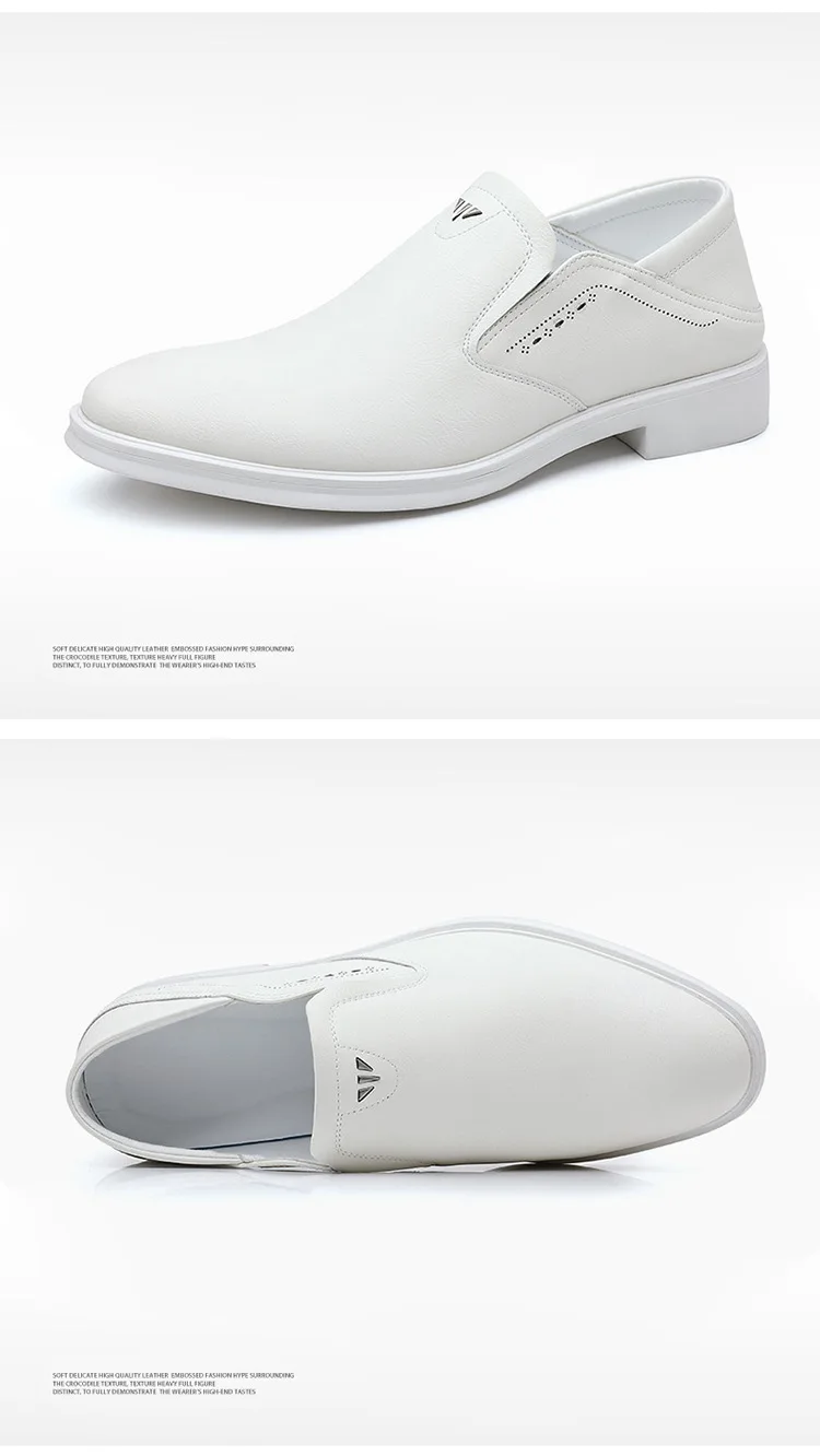 Spring Autumn Men's Dress Shoes Fashion Casual Cow Leather British Pointed Toe Black and White New Designer Shoes Male