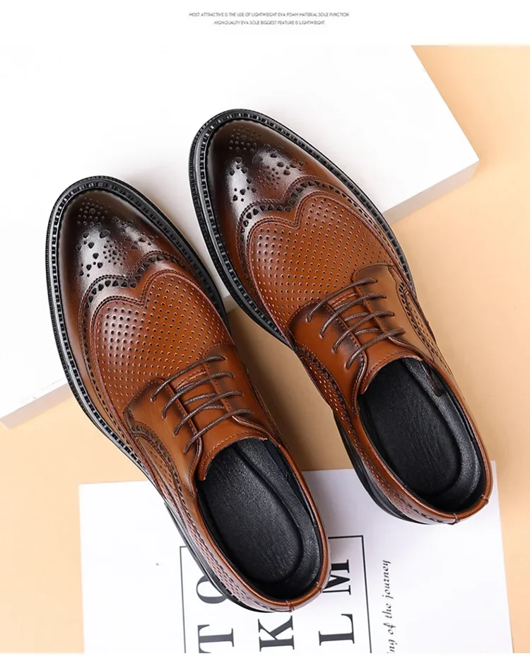 Men's Business Formal Hollow out Brogue Shoes Wedding Casual British Style Leather Shoes Rubber Sole Adult Daily Wear