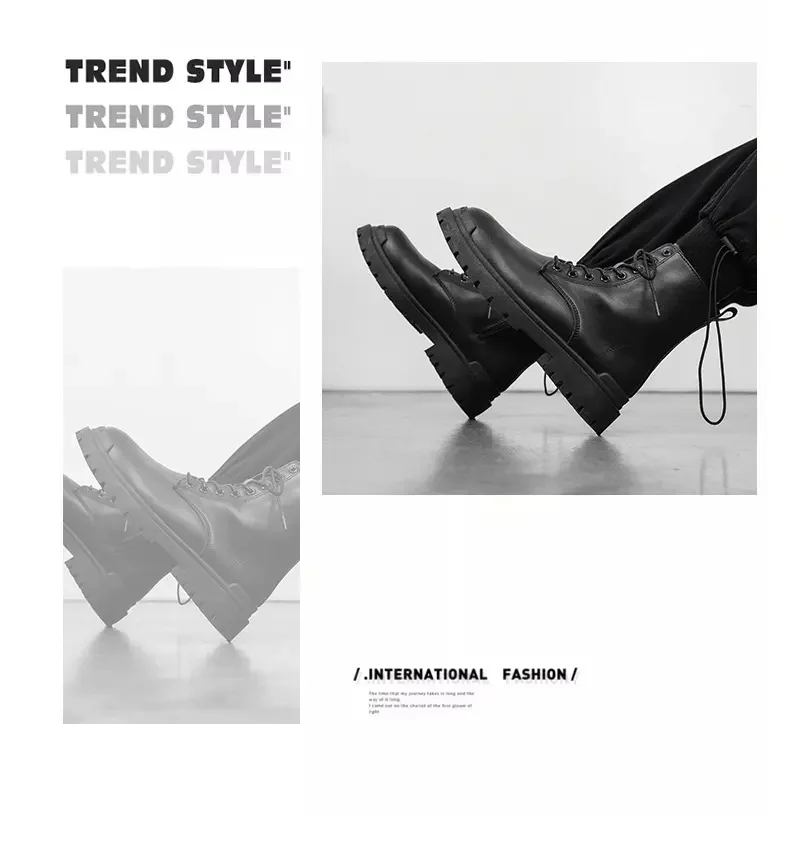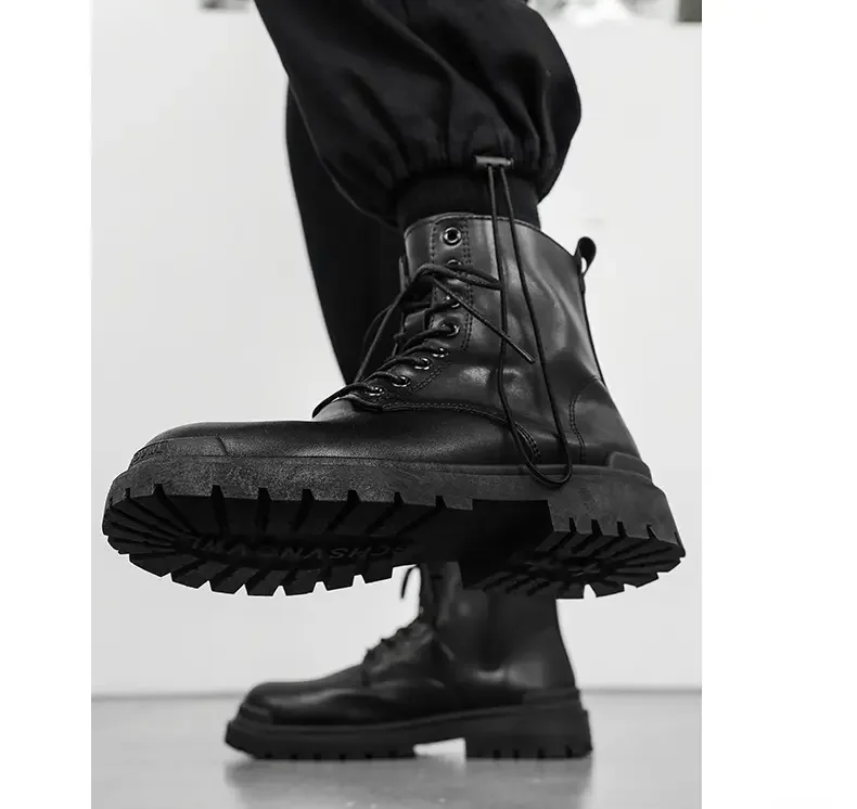 Men's High-quality British Chelsea Luxury Leather Fashion Workwear Motorcycle Trendy Shoes Platform Spring Black Men's Shoes